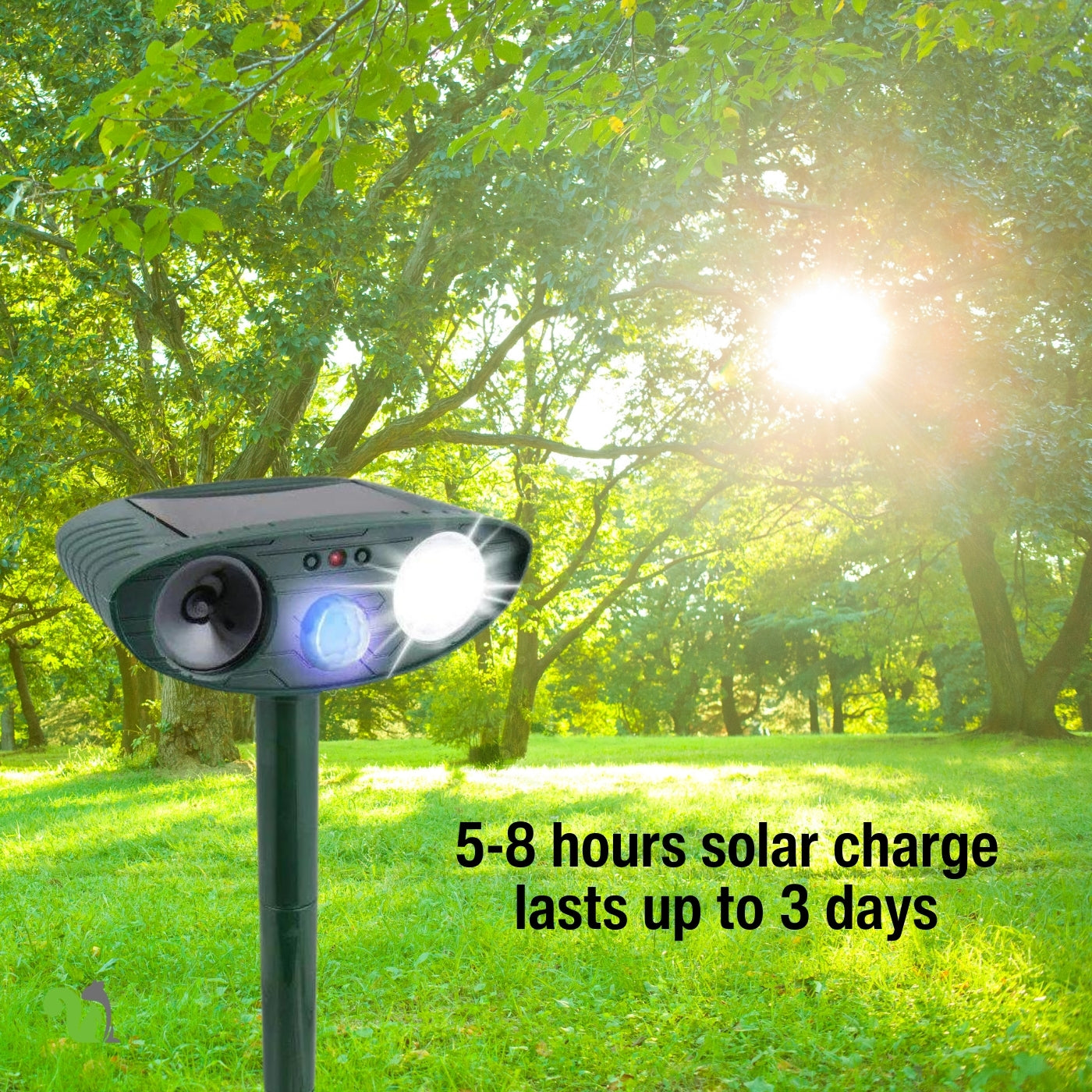 1️⃣ Detects Movement – The built-in motion sensor activates when squirrels enter the protected zone.