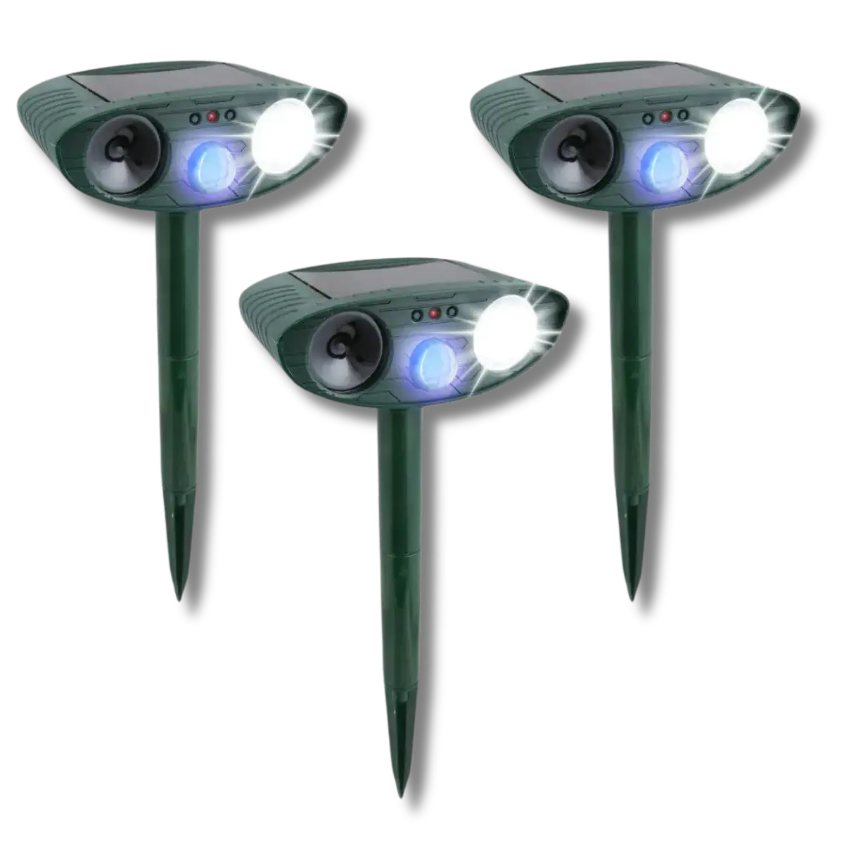 2️⃣ Creates an Invisible Barrier – Ultrasonic waves and flashing lights startle squirrels, making them uncomfortable so they leave the area.